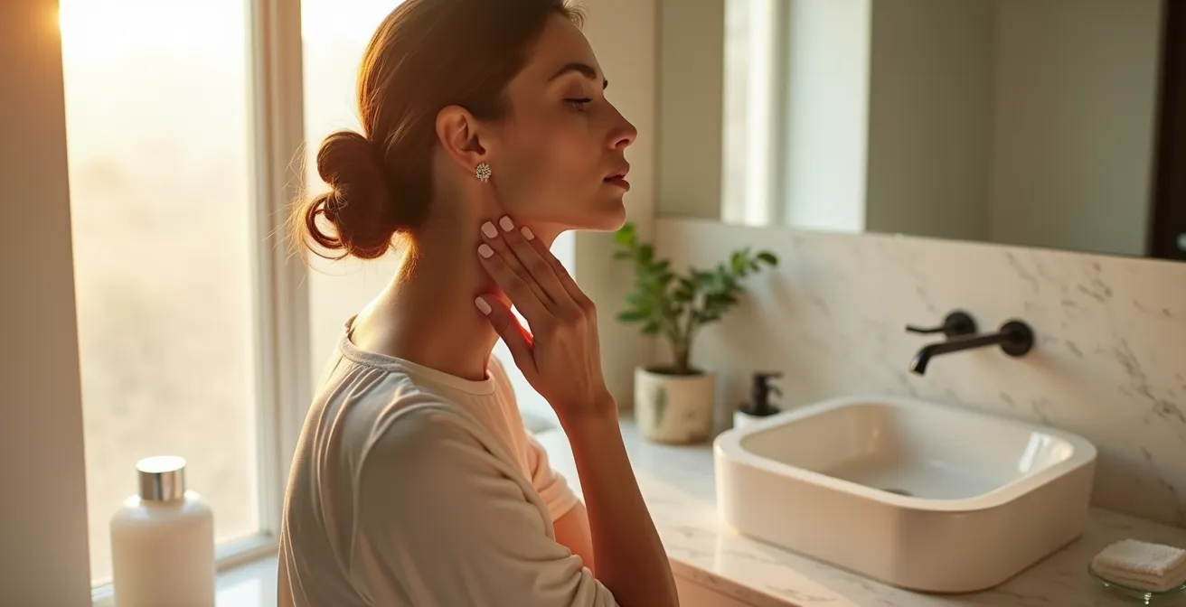 Molte donne dedicano tempo e risorse considerevoli alla cura del viso, ottenendo risultati notevoli. Eppure, spesso trascurano due aree critiche che, più di ogni altra, tradiscono il passare del tempo: il collo e il décolleté. Questo “stacco” visivo, dove un volto curato contrasta con una pelle segnata in basso, è un problema comune che nasce da un equivoco fondamentale. Non si tratta di pigrizia, ma di non conoscere la biologia specifica di queste zone. La pelle qui è strutturalmente diversa: è più sottile, possiede meno ghiandole sebacee che la mantengono idratata e una densità inferiore di collagene, l’impalcatura che ne garantisce il sostegno.